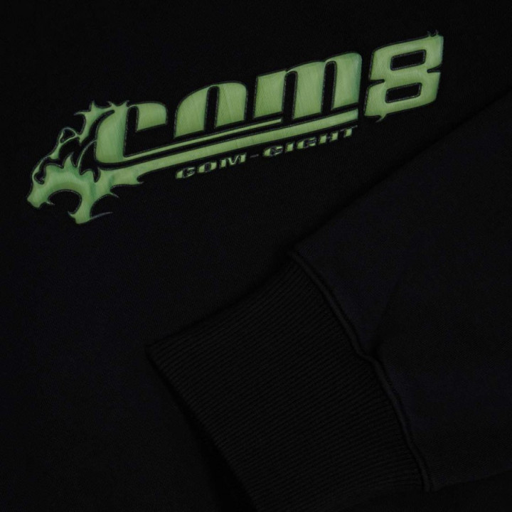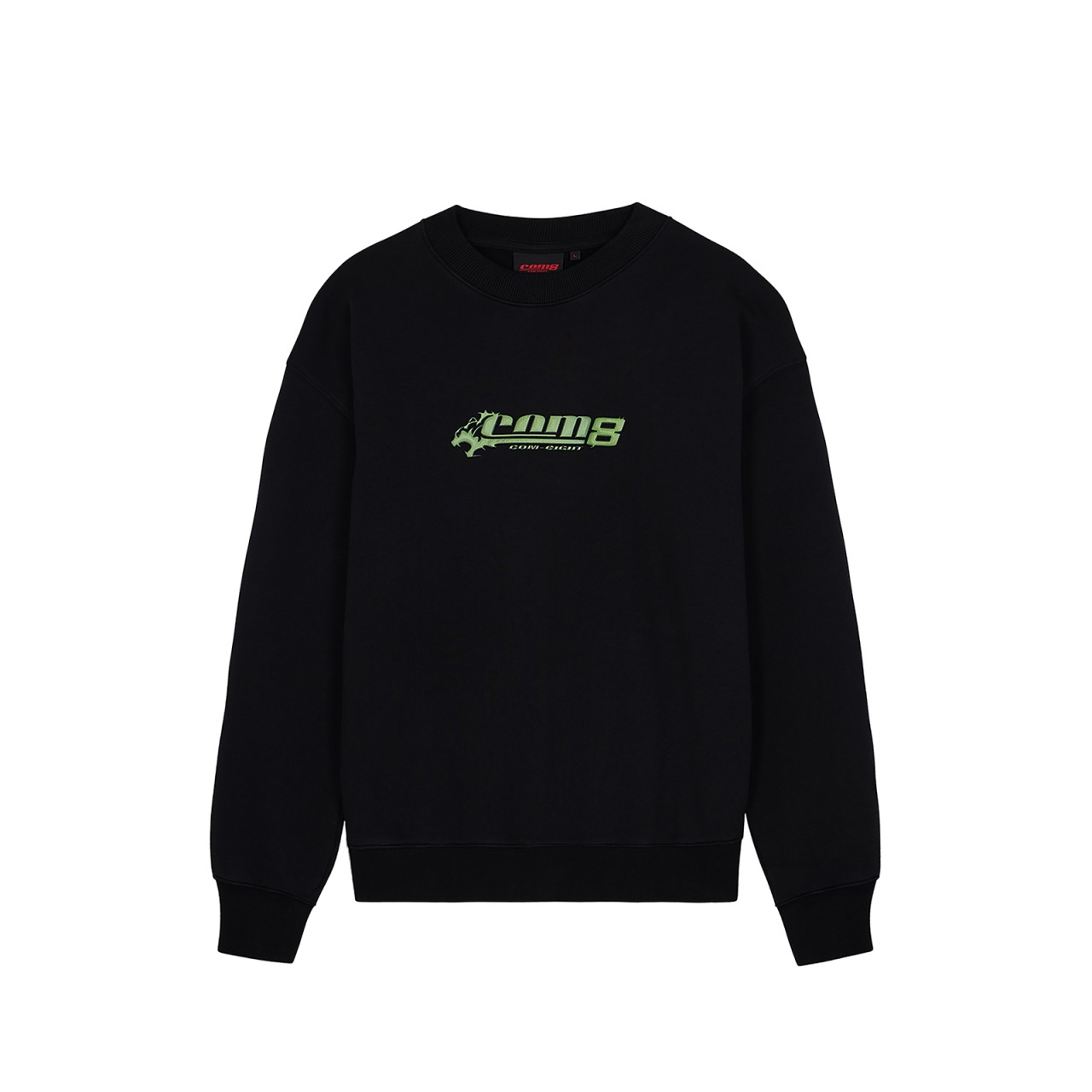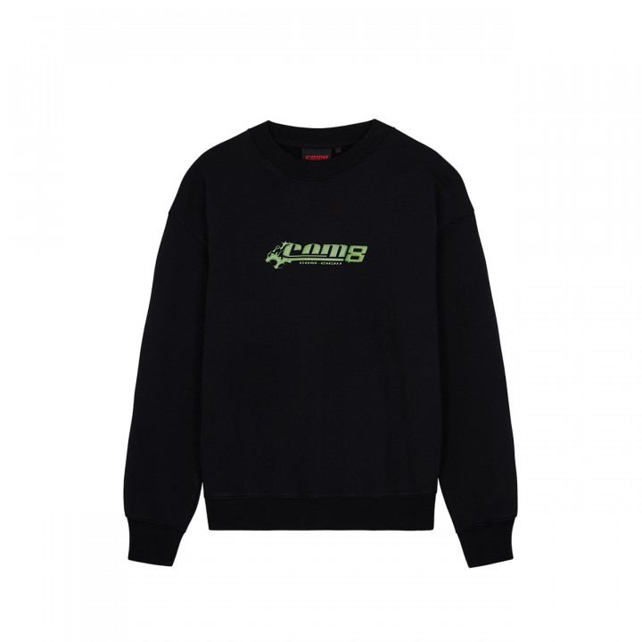 COM–EIGHT HERITAGE JAGUAR CREWNECK IN BLACK. MADE IN PORTUGAL. FEATURES 100% COTTON 360gr USED FRENCH TERRY, HIGH FREQUENCY LOGO JAGUAR 100% TPU IN GREEN, RIB KNIT CUFFS & WAISTBAND.