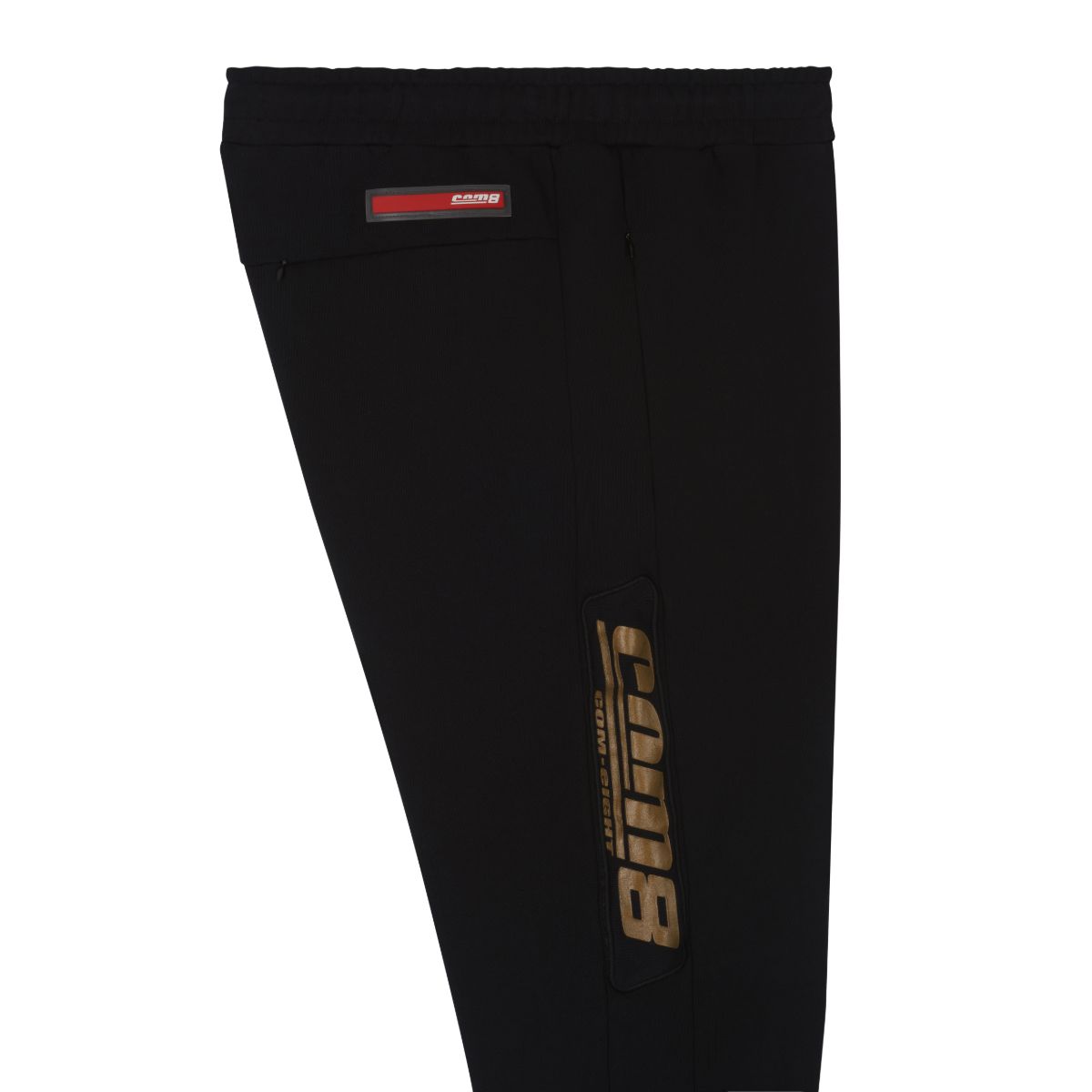 COM-EIGHT LOGO SWEATPANTS IN BLACK. PRODUCED IN PORTUGAL. FEATURES 100% COTTON 360gr FRENCH TERRY, CLASSIC LOGO SCREEN PRINT IN GOLD AND ADJUSTABLE WAIST WITH DRAWSTRING.